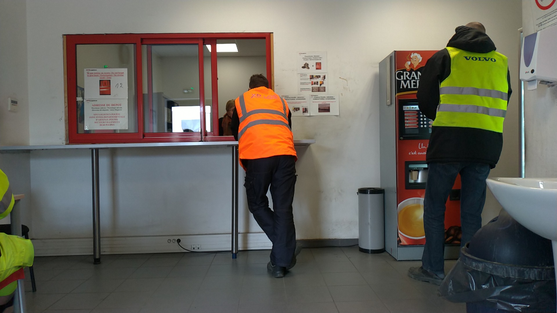 Vous arrivez au XPO et vous vous rendez au parking, puis à pied vous vous rendez à un poste de contrôle où se trouvent deux machines pour vous inscrire. Ensuite ils vous envoient un SMS avec le numéro de quai et un code x si la barrière n'est pas levée. Vous vous présentez à l'accueil《15/69》là vous attendez que la réceptionniste prenne vos papiers et vous remette une autre feuille avec vos informations et votre numéro de quai. Attendez ensuite dans une petite pièce et attendez qu’ils viennent vous appeler. Lorsque le chariot élévateur arrive et vous appelle, vous entrez, mettez un masque et continuez à vous tenir à côté du quai jusqu'à ce qu'il décharge. Ensuite, au bureau, vous récupérez les papiers et c'est parti. Plus ou moins, personne ne vous éloigne d'environ 3 heures debout.